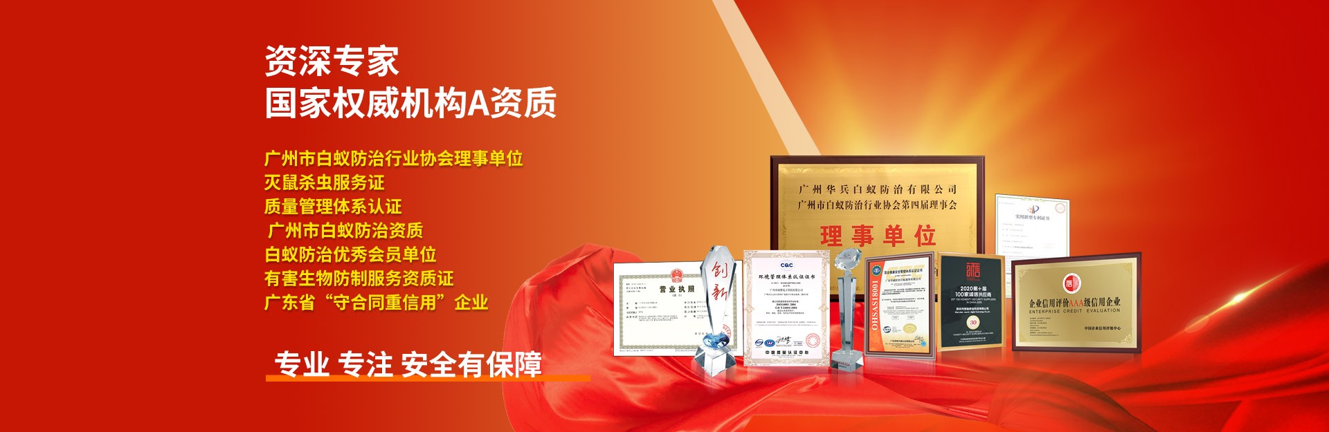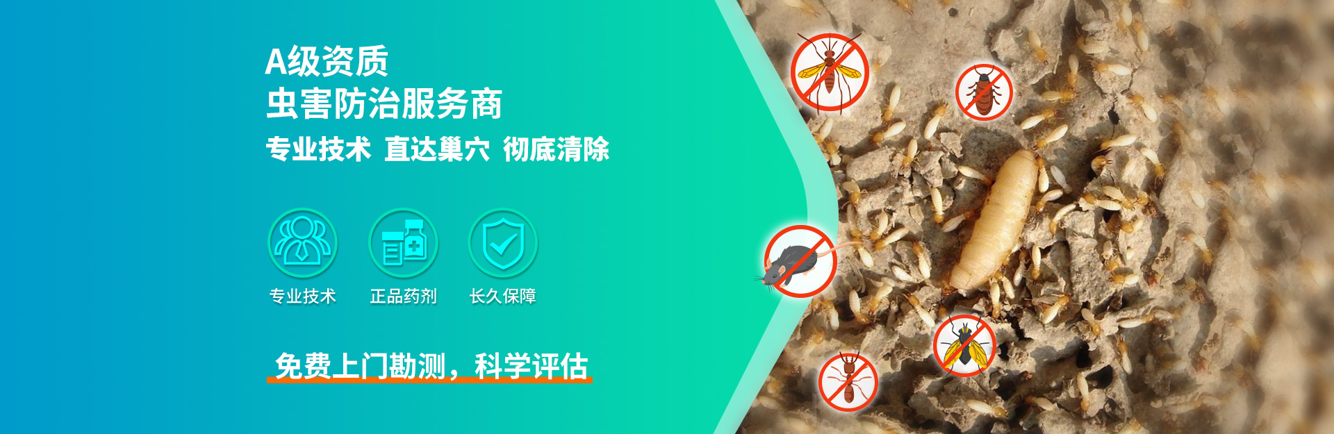廣州華兵白蟻防治有限公司 ® 前身是廣州白蟻防治所旗下的一所老牌白蟻防治公司,隨著社會的快速發展和國家政策的變化,2015年重新注冊命名為廣州華兵白蟻防治有限公司。 廣州華兵白蟻防治從事白蟻、四害等城市害蟲預防與治理。擁有一批從事白蟻防治的專家、技術顧問、專業工程師及專業技術施工人員,主營園林綠化、新建、改建、擴建、裝飾裝修、等房屋的白蟻防治工程;專業提供白蟻防治、熏蒸 殺蟲施工服務及咨詢;我們擁有雄厚的技術力量、豐富的實踐經驗、規范的管理、嚴格的施工和復查跟蹤制度,確保治理和預防質量;竭誠為廣大客戶提供優質、高效的服務。 我們將始終堅持" 安全與質量并重,誠信服務" 的理念,以先進的技術和科學的管理為客戶提供優質的技術工程服務。 愿廣大用戶與我們攜手合作,共創一個安全、舒適的居住環境。